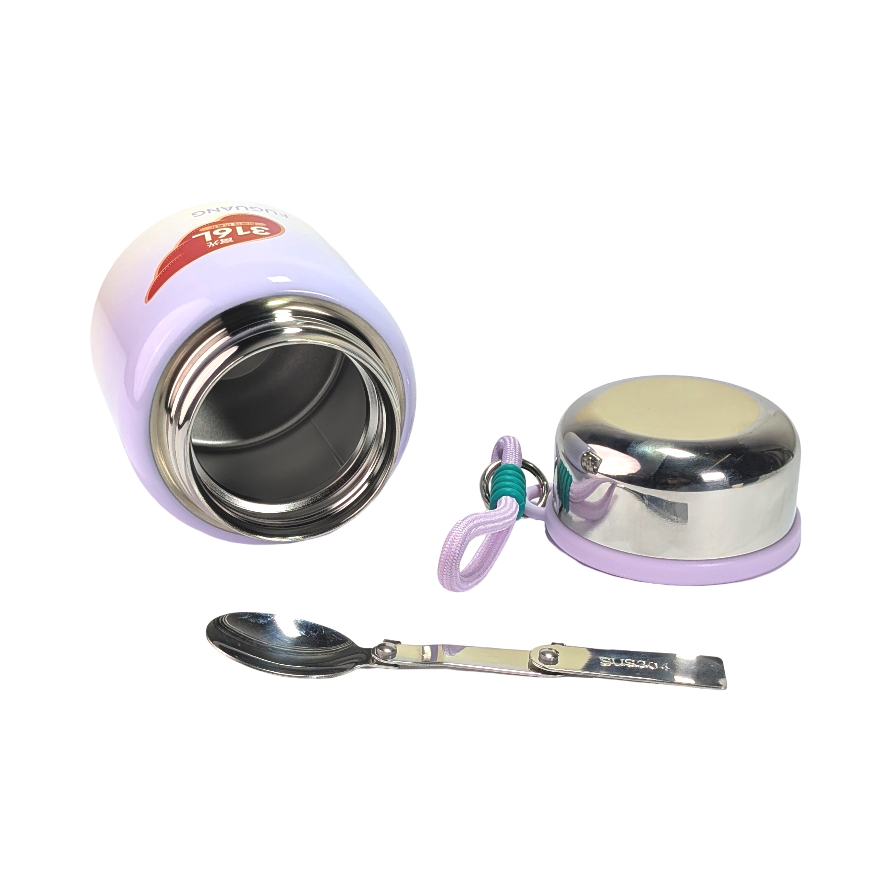 The stainless steel interior keeps food fresh and safe, resisting stains and odors. The lid includes a special compartment for the included foldable spoon, keeping it clean and ready to use. 🥄✨ The collapsible spoon stores neatly without taking up space. 📦