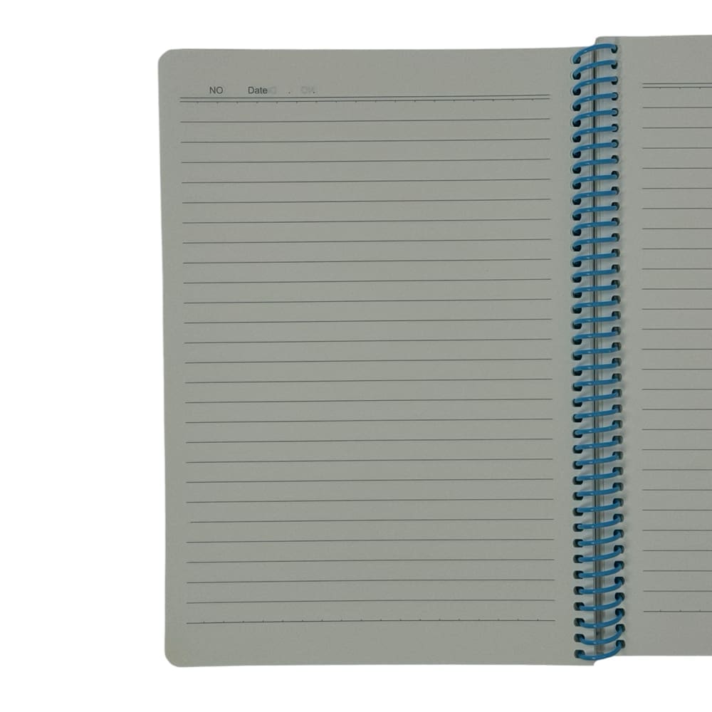 الملف الحلزوني يخلي الدفتر ينفرش عدل أو ينطوي للورا بسهولة، وهيچ تصير الكتابة مريحة وين ما تگعد—عالطاولة، بالصف، أو وإنت طالع. حجمه A5 صغير ومرتب يدخل بالجنطة بدون زحمة، مثالي للمدرسة، الكلية، أو للاستعمال اليومي.