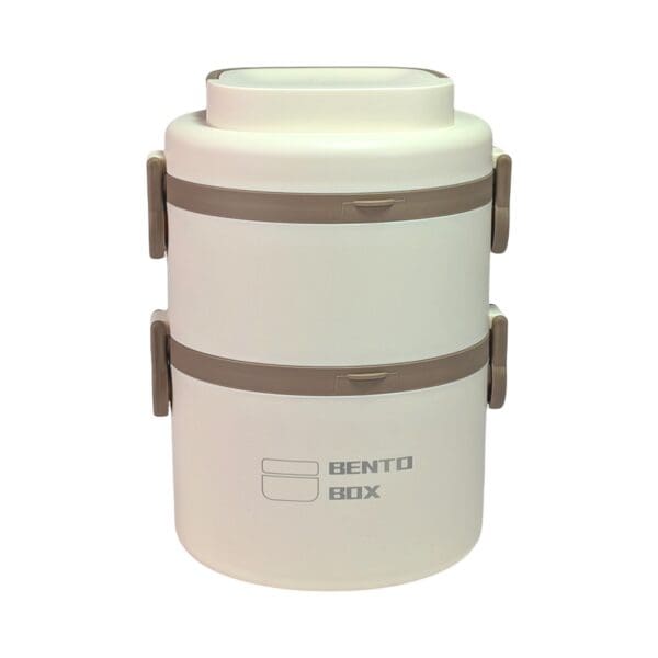 Enjoy fresh meals on the go with this practical 2-layer bento box. It has a durable stainless steel interior with a plastic exterior and easy-grip plastic handle for comfortable carrying.