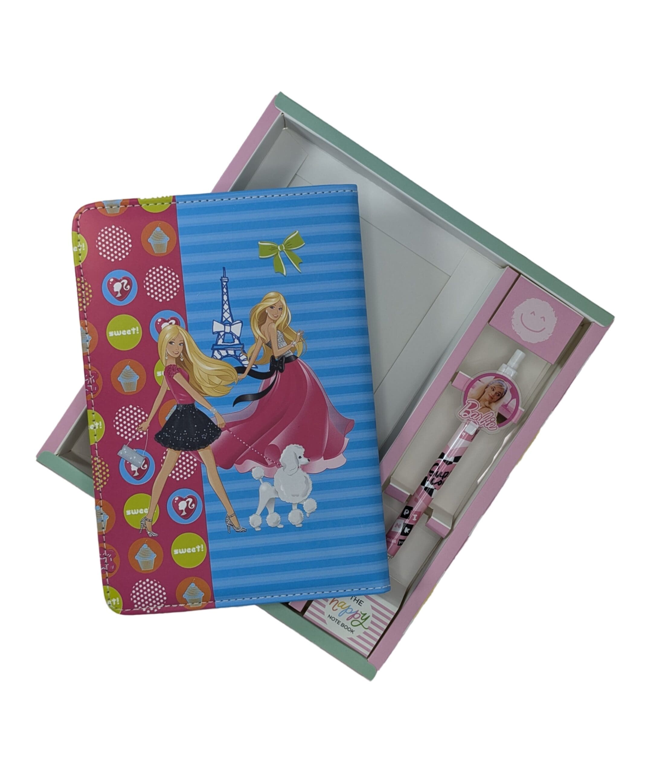زەید، تێبینیە خۆشەکانت و شێوە جوانەکەی لەگەڵ سێتی پەڕاوگەی باربی! کۆمەڵەکە دەفتەر یاداشتێکی A5 لەگەڵ قەڵەمێکی هاوشێوە لەخۆ دەگرێت، گونجاوە بۆ قوتابخانە، ڕۆژنامەنووس، یان پڕۆژە داهێنەرەکانت.