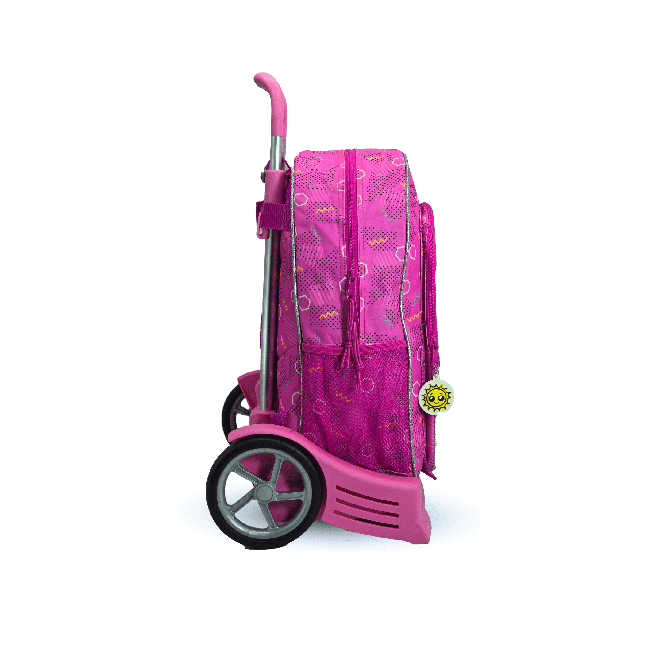 Use it as a backpack or roll it with ease! This foldable trolley features a universal backpack attachment, silent anti-vibration wheels, a removable handle, and durable polypropylene & aluminum construction. Compact, versatile, and perfect for school.
