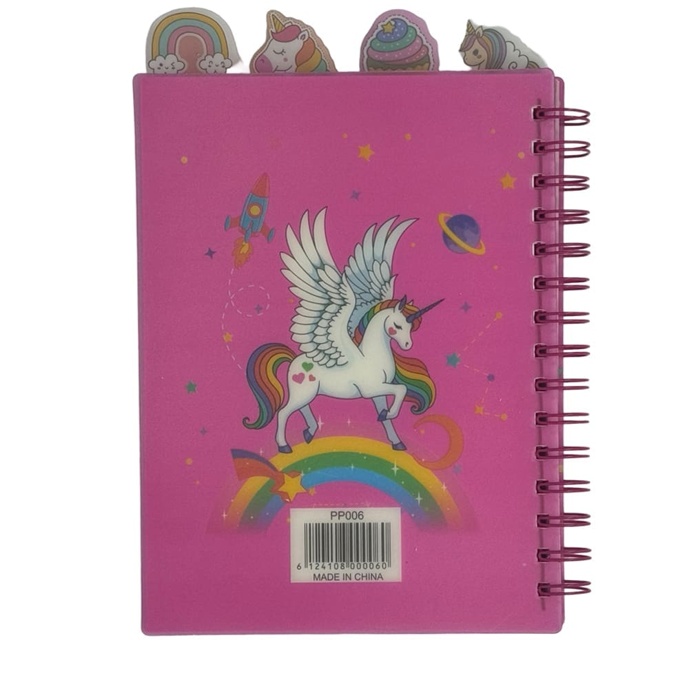 The notebook is organized into four sections, separated by durable plastic subject dividers, each featuring a cute unicorn design. These dividers make it easy for kids to keep their notes sorted by subject or activity, helping them stay organized and build good school habits from an early age. π¦